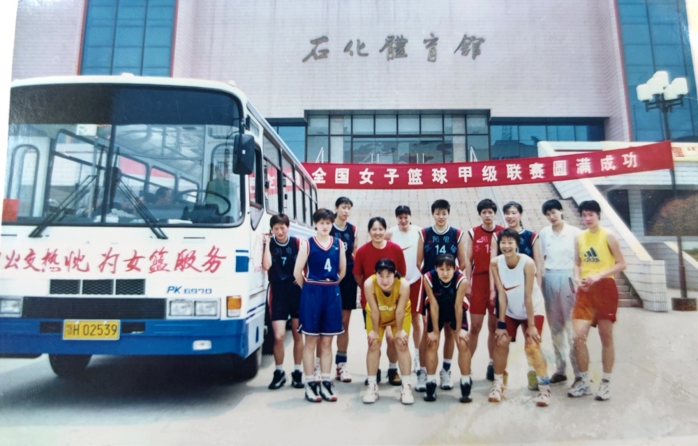 ▲1999年5月25日,沈陽電梯隊在公交車旁合影留戀。從“中國籃球大事記”查閱到,1999年全國女子籃球甲級聯賽,沈陽電梯隊奪得了當年聯賽冠軍。