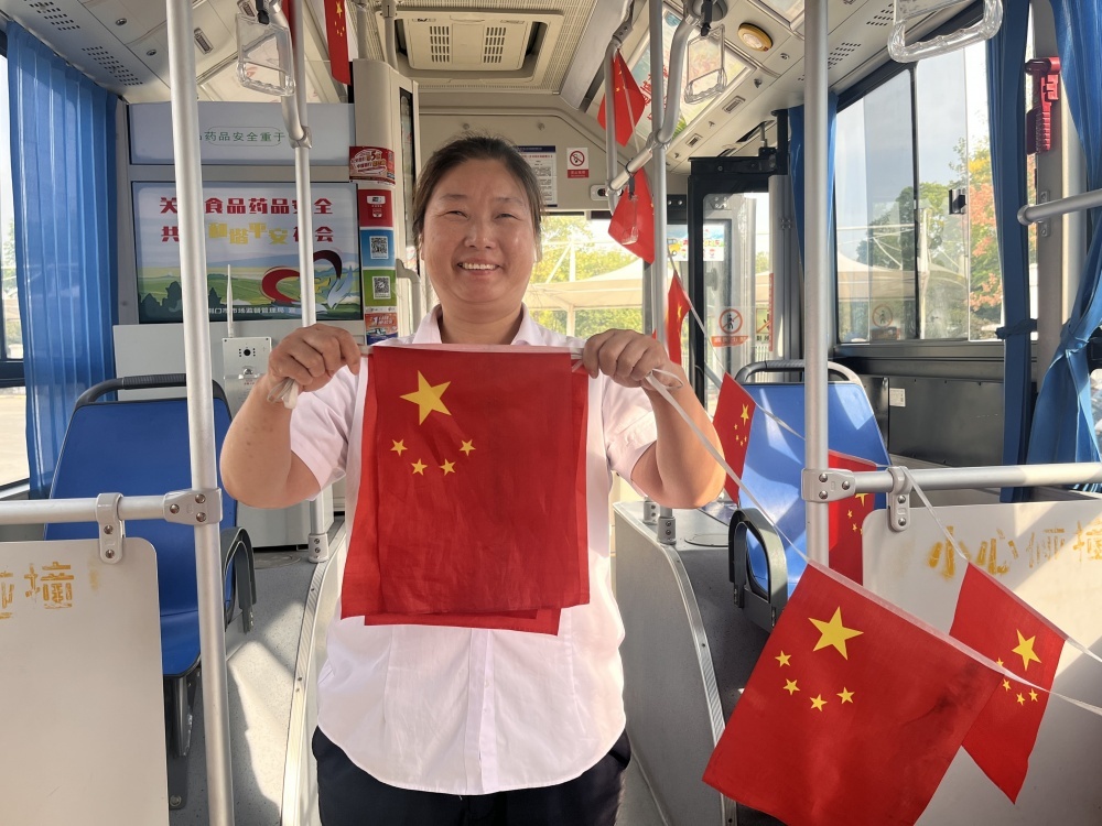 走進(jìn)公交車廂,映入眼簾的是一面面鮮艷的小國(guó)旗,輕輕飄動(dòng),仿佛在向每一位乘客傳遞著節(jié)日的喜悅和祝福,除了車廂內(nèi)部的裝飾,公交車輛的LED顯示屏也成為了重要傳播窗口,全天滾動(dòng)播放國(guó)慶祝福語。這些細(xì)節(jié)布置不僅為車輛增添了節(jié)日色彩,也讓市民的出行體驗(yàn)更加美好。