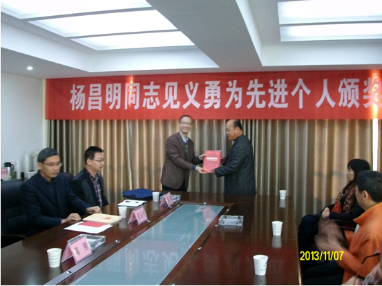 楊昌明,52歲,退伍軍人,也是荊門公交集團(tuán)一公司39路駕駛員。10月6日下午,楊昌明駕駛鄂H9337公交汽車,行駛至荊門火車站附近,車上一位帶孩子的婦女說錢包被人偷了。車上乘客反映,錢包是婦女正要上車時被小偷偷的,前面跑的那個人就是小偷。楊昌明聽到后,迅速關(guān)上車門,踩下油門,追向小偷。在追上小偷后,楊昌明便打開車門跳下車向小偷猛追過去。小偷見楊昌明窮追不舍,只好扔下錢包跑進(jìn)一條小巷子。本著安全接送乘客,楊昌明撿起錢包后回到車上,并當(dāng)著乘客的面清點了錢包。錢包內(nèi)裝有現(xiàn)金6200元、多張存折(共58000元)、身份證等。隨后,經(jīng)公交公司報案,錢包由民警交還失主。市見義勇為促進(jìn)會及東寶區(qū)社會管理綜合治理委員會表示,楊昌明見義勇為、弘揚(yáng)正氣的事跡經(jīng)包括本報在內(nèi)的媒體宣傳報道后,受到社會各界廣泛好評和群眾的一致稱贊。經(jīng)研究決定,授予楊昌明見義勇為先進(jìn)個人稱號,并分別獎勵1000元、500元人民幣。